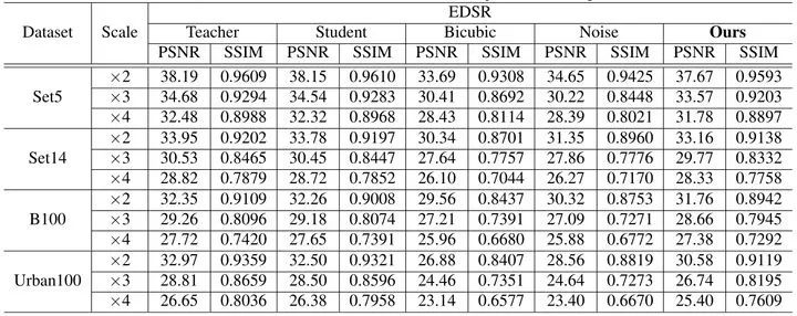 EDSR 实验 Teacher 使用 EDSR 模型, Student 是通道数减半的模型 EDSR-half,如下图7所示。