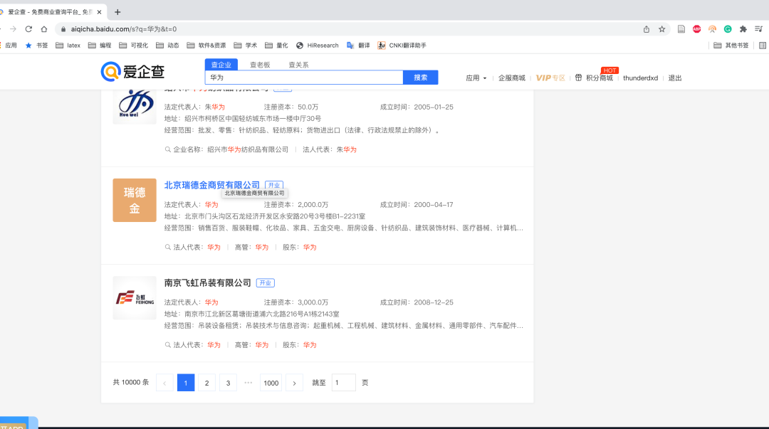 想搜集企业信息,可以使用爱企查网站,例如通过该网站,搜”华为“,,可以获得与关键词华为相关的很多企业名信息