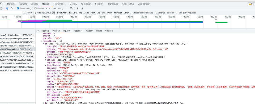 {'pid': '31360200662522', 'entName': '<em>华为</em>技术有限公司', 'entType': '有限责任公司(自然人投资或控股的法人独资)', 'validityFrom': '1896-08-14', 'domicile': '深圳市龙岗区坂田<em>华为</em>总部办公楼', 'entLogo': 'https://zhengxin-pub.cdn.bcebos.com/logopic/67e739bf0e47768f4a1f542daf3f7f42_fullsize.jpg', 'openStatus': '开业', 'legalPerson': '赵明路', 'tags': {'laTaxer': '<span class="zx-ent-tag laTaxer">A级纳税人(2020)</span>'}, 'logoWord': '华为技术', 'titleName': '华为技术有限公司', 'titleLegal': '赵明路', 'titleDomicile': '深圳市龙岗区坂田华为总部办公楼', 'levelAtaxer': [2020, 2018, 2019, 2016, 2017, 2014, 2015], 'regCap': '5,035,113.2万', 'scope': '一般经营项目是:程控交换机、传输设备、数据通信设备、宽带多媒体设备、电源、无线通信设备、微电子产品、软件、系统集成工程、计算机及配套设备、终端设备及相关通信信息产品、数据中心机房基础设施及配套产品(含供配电、空调制冷设备、智能管理监控等)的开发、生产、销售、技术服务、工程安装、维修、咨询、代理、租赁;信息系统设计、集成、运行维护;集成电路设计、研发;统一通信及协作类产品,服务器及配套软硬件产品,存储设备及相关软件的研发、生产、销售;无线数据产品(不含限制项目)的研发、生产、销售;通信站点机房基础设施及通信配套设备(含通信站点、通信机房、通信电源、机柜、天线、通信线缆、配电、智能管理监控、锂电及储能系统等)的研发、生产、销售;能源科学技术研究及能源相关产品的研发、生产、销售;大数据产品、物联网及通信相关领域产品的研发、生产、销售;汽车零部件及智能系统的研发、生产、销售及服务;建筑工程;设计、制作、发布、代理各类广告;通信设备租赁(不含限制项目);培训服务;技术认证服务;信息咨询(不含限制项目);企业管理咨询(不含限制项目);进出口业务;国内商业、物资供销业业务(不含专营、专控、专卖商品);对外经济技术合作业务;房屋租赁业务(持许可经营证);以及其他法律法规不禁止的经营活动(依法须经批准的项目,经相关部门批准后方可开展经营活动)。,许可经营项目是:增值电信业务经营。', 'regNo': '815503001822039217', 'hitReason': [{'品牌项目': '<em>华为</em>'}, {'商标名称': '<em>华为</em>'}, {'企业名称': '<em>华为</em>技术有限公司'}, {'网站名称': '<em>华为</em>应用平台1'}, {'地址': '深圳市龙岗区坂田<em>华为</em>总部办公楼'}], 'labels': {'opening': {'text': '开业', 'style': 'blue', 'fontColor': '#1EA930', 'bgColor': '#EBF6EC'}}, 'personTitle': '法定代表人', 'personId': 'a9f275934f59110096757b656ba41382'}