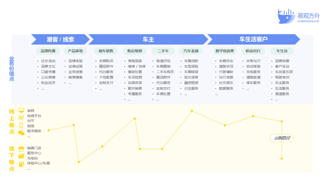 同样的,下图展示了车企用户在转化链路中的哪些触点会产生数据: