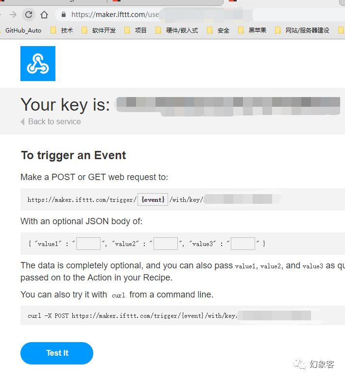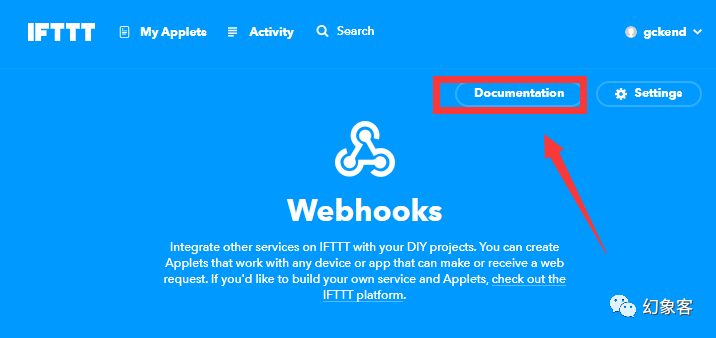 进入 https://ifttt.com/maker_webhooks 页面,你可以看见你刚新建的webhooks.