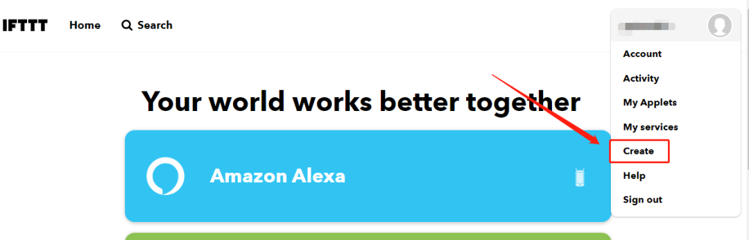 首先注册一个IFTTT账号 (https://ifttt.com).