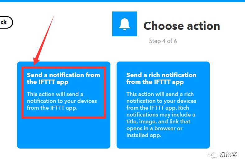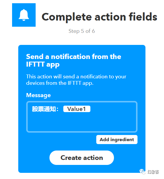 选择 send a notification from the ifttt app. 这个action能够使得ifttt发出一个通知。