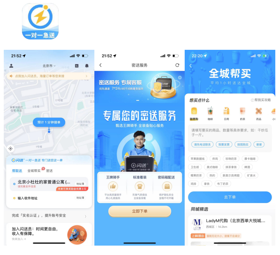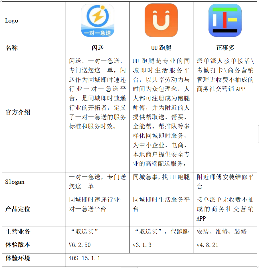 跑腿的本质:同城、异地帮人办事,针对客户的任何需要,帮助客户去完成、解决事情。针对产品概念,除去外卖产品,在跑腿行业找到以下几个合适的竞品:闪送:行业头部产品,有成熟的业务体系和完善的功能,虽然模式不同,但是探究其崛起路程、商业逻辑和功能设计等,能够给予我们一些启发,帮助本产品更好的落地。