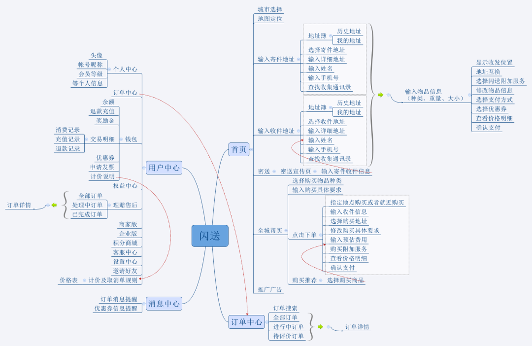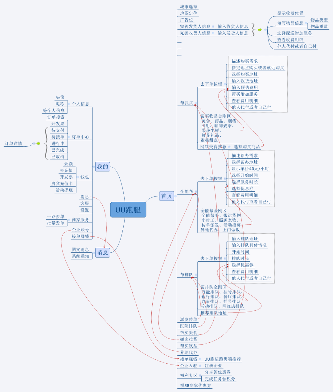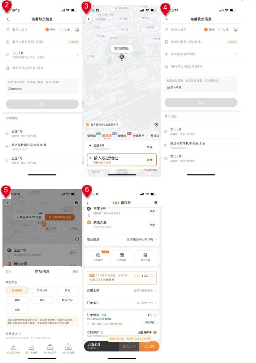 闪送和UU跑腿的主要功能在于“帮取送买”,结构较为清晰,下单层级不超过5层,主要功能聚集在1到3层,将次要信息放在深层,信息呈现清晰,流程设计比较完善,UU跑腿的服务场景比闪送更丰富,但是UU跑腿部分页面跳转逻辑体验较差,比如用户在首页点击[搬家拉货],下一个页面是[全能帮]页面,都没有[搬家拉货]选项,用户还需要再点击[搬运货物],才能到下单页面。再比如用户付款时如果点击[他人代付]后想选择自己付,返回时直接到首页了。所以UU跑腿需要改进其页面跳转逻辑,提升用户体验。UU跑腿在使用过程中出现两处bug:1.下帮送订单过程中,地图显示收发位置时,只显示收件地址,而且提示收发件地址距离较近。2.支付页面的提示信息一直卡着不动,跳转到别的页面仍然显示。正事多的主要功能在与“下单找人”和“接单报价”,是一个完整的业务闭环平台,但是其产品结构比较混乱且不合理,比如[消息]里边有[接单记录],有些功能点到最后才知道要做什么,可能还需要猜,比如[消息]里边,点击当前时间(23:14),进去时派单数据统计,[设置红包]最后才知道是别人帮忙分享名片的奖励,而且很多功能重叠,不相关的内容放在一起等,又让用户猜,又让用户烦,而且时常闪退,各个页面UI设计混乱,只是功能入口的堆叠,没有主次之分,没有层次感,导致用户体验很差。这是正事多发展道路上的一道鸿沟,不解决这些问题,他很难发展起来。闪送和UU跑腿这类产品的功能结构和业务流程都很类似,在具体产品设计时可以作为参考。产品功能可以丰富,但是页面跳转逻辑一定要合理,符合用户使用逻辑的才是好的产品逻辑。好的产品理念和商业模式在没有好的用户体验之前都是狗屎,好的用户体验才是王道。要避免bug发生,虽然UU跑腿这两个bug不会影响核心业务,但是会降低用户对产品的信任感。整体来看,核心功能模块就是“帮取送买”的下单功能,UU跑腿帮排队和全能帮,在加上正事多的接单下单功能,现在依次进行功能体验及功能分析。帮取送的业务流程是:输入收寄双方信息→输入物品信息→选择附加服务→付款。