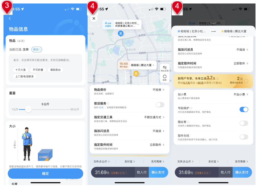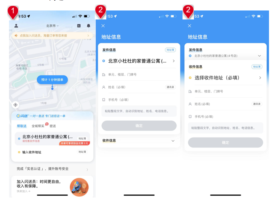 闪送:点击帮买→填写帮买物品信息及详细要求→填写地址及附加服务并且付款。