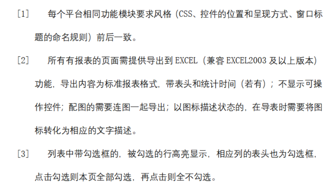 这一模块主要把一些公共的需求说明放在这,免得每次都得说一遍,总之将大部分页面公共的功能说明放在此。比如每个报表页面提供导出EXCEL功能、点击删除按钮需要二次弹框确认等。