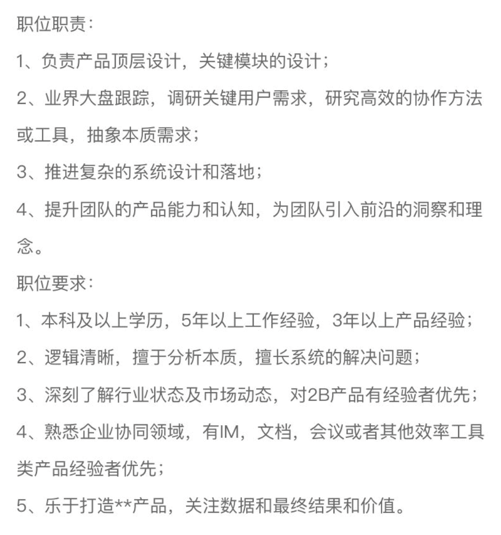 另一方面,从我搜罗的产品架构师的职位描述来看,产品架构师有着强烈的B端产品属性。一些企业招聘产品架构师是面向B端领域,说简单点,就是产品架构师参与到销售和项目实施。