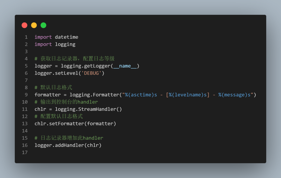 为了使用logging模块记录日志,我们需要先配置好logging相关的选项。