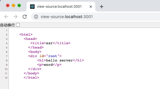 上面采用客户端渲染的HTML页面中<div id="root"></div>中无内容,需在浏览器端加载并执行bundle.js后才能构建出有内容页面。
