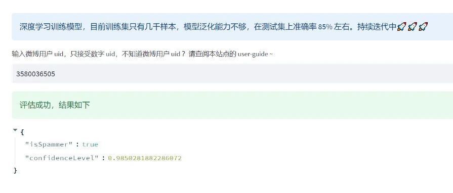 更准更快的微博 Spammer 水军账号检测模型,支持 API 调用